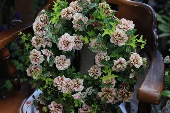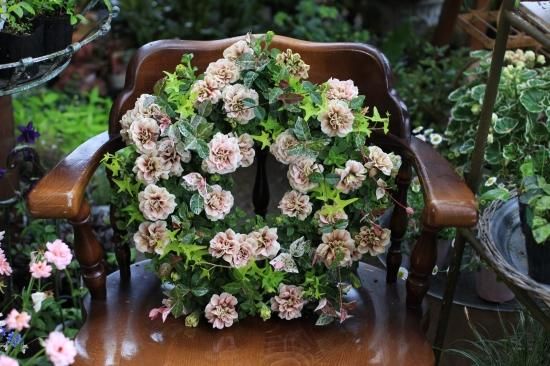 ハツユキカズラとヘデラ・ライトフィンガーを添えて素敵なブリコラージュフラワーリースができました^^