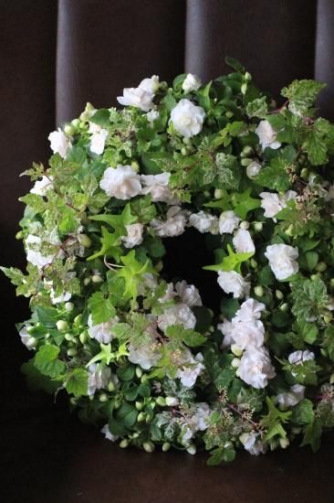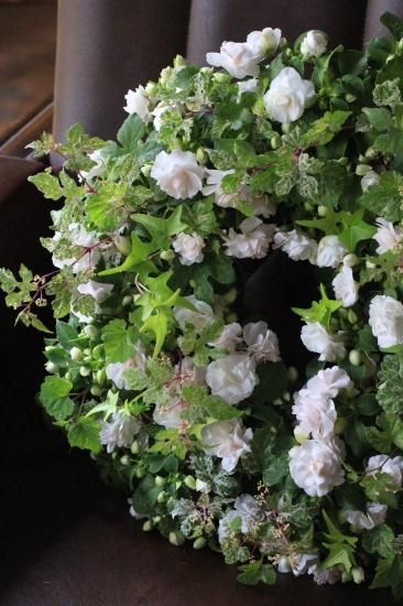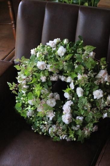 Mサイズリースにギャザリング技法で植え込んでいます。
