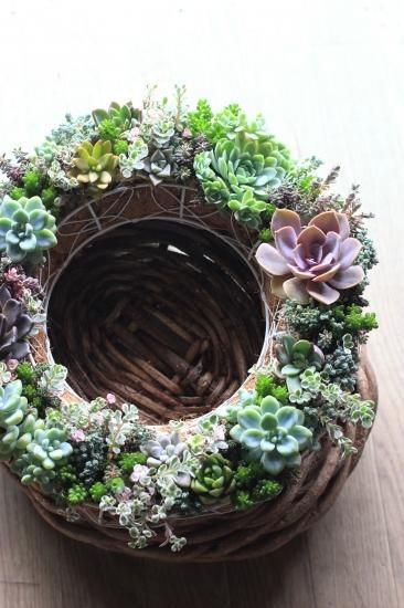 別売りのリース台に植え込んでいます。