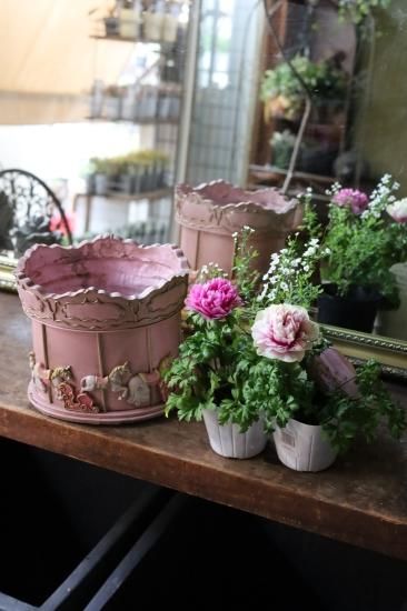今回のプチオンラインレッスンは、メリーゴーランドの器に八重咲アネモネ・シフォンを植え込むひとはちを作ります。