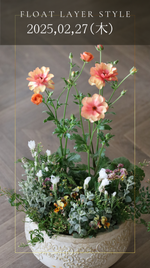 高低差を活かした花合わせスタイルのひとつで、「浮遊する層」という意味。