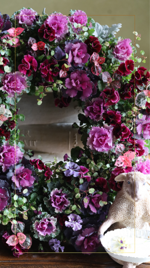 シックな葉ボタンリースが作りたい方へ、赤と紫(ルージュ・ヴィオレ)を基調とした色合わせの花苗セットをお送りさせていただきます。