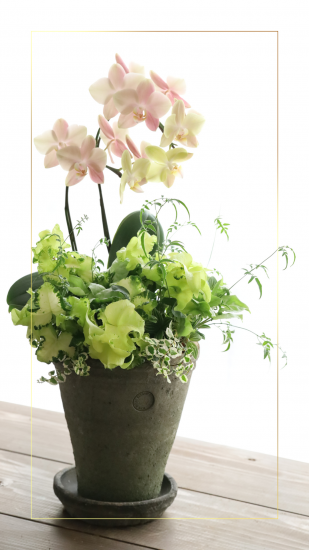 レッスンテーマは「胡蝶蘭・マザーチークの足元サラダ植え」